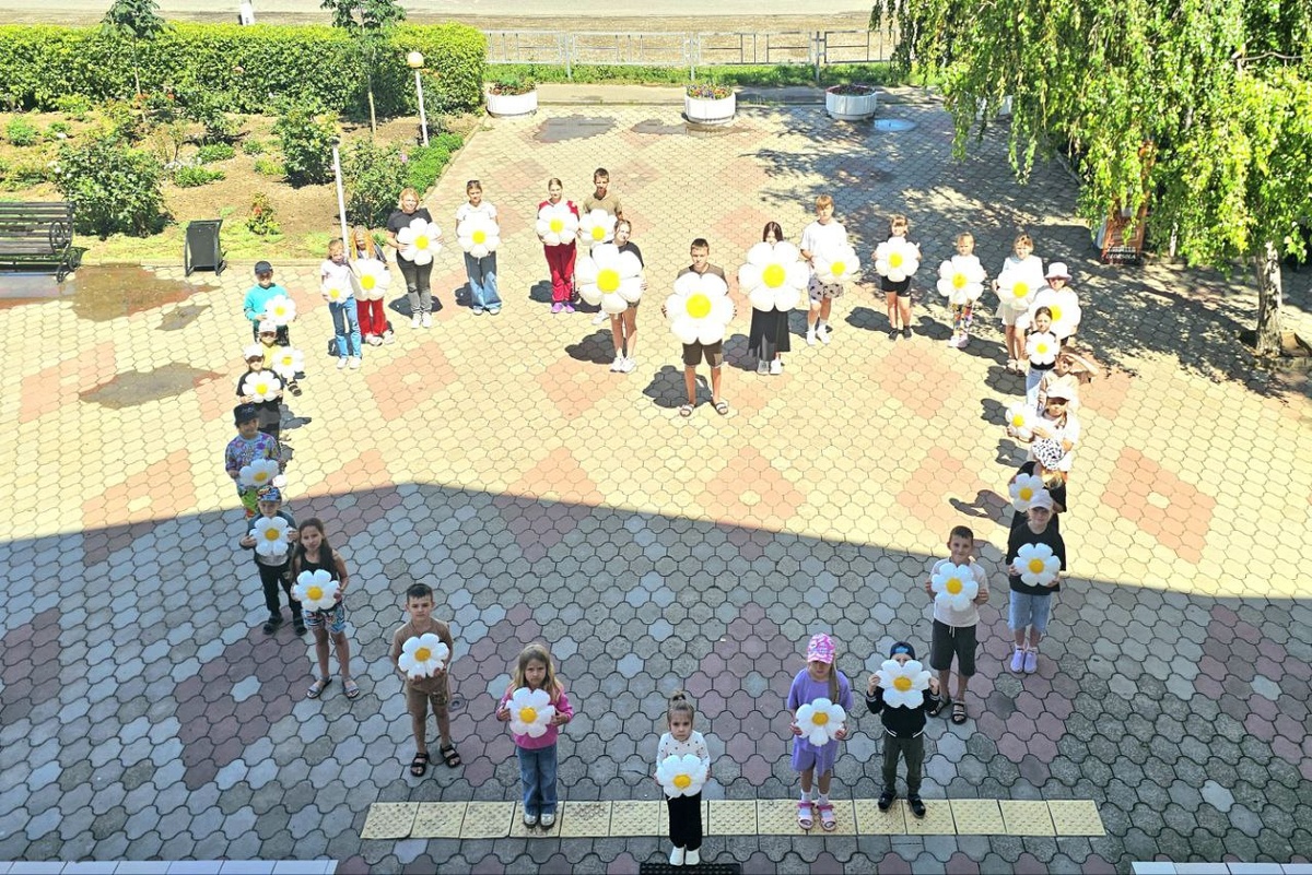 Посетители детской летней площадки Старотитаровского ДК приняли участие в массовой акции «Символ семьи», посвященной Дню семьи, любви и верности.