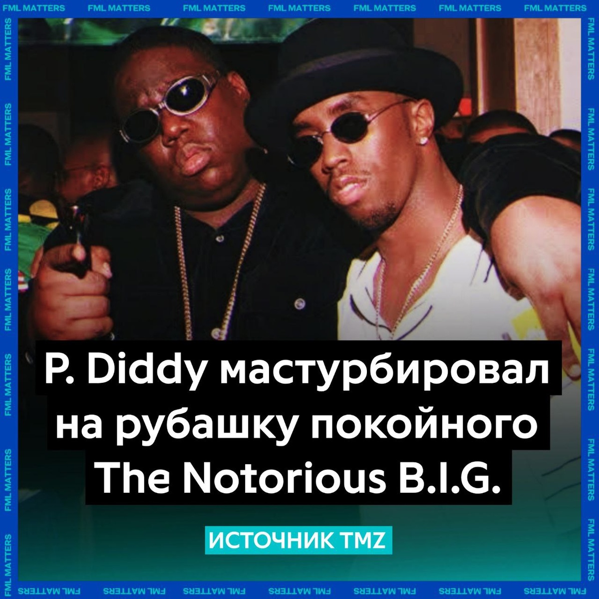 ❌ P. DIDDY МАСТУРБИРОВАЛ НА РУБАШКУ THE NOTORIOUS B.I.G! По сообщениям TMZ, анонимный истец подал гражданский иск против Комбса, утверждая, что в 2020 году артист мастурбировал на рубашку покойного рэпера, после чего бросил её в мужчину со словами: «Спи спокойно Бигги» По словам истца, инцидент произошёл на складе с личными вещами Бигги в Лос-Анджелесе, где Дидди также якобы предлагал присутствующим наркотики и включал порно на телефоне. В иске также упоминается другой эпизод — в 2005 году Дидди якобы домогался того же человека и требовал орального секса. 💀 FML MATTERS