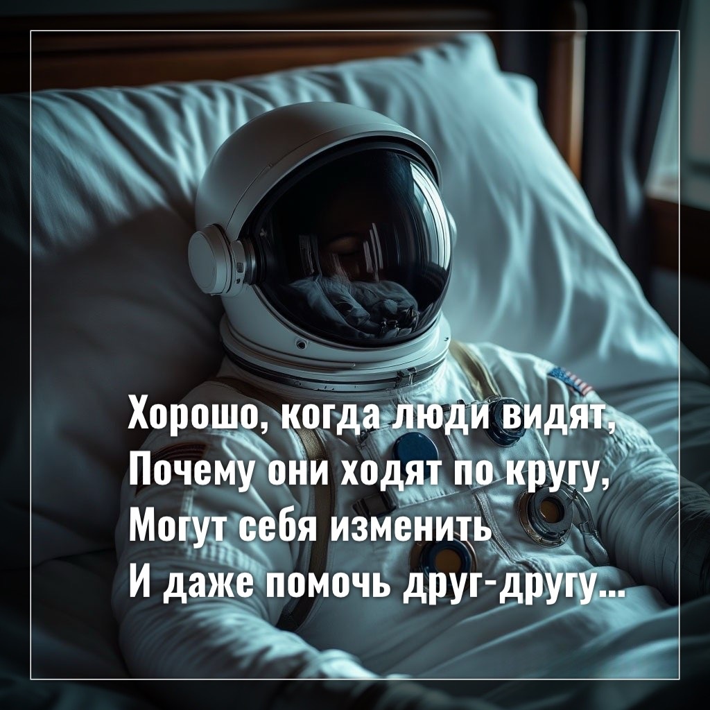Хорошо, когда люди видят, Почему они ходят по кругу, Могут себя изменить И даже помочь друг-другу, А если не то, что не видят, А не хотят даже знать, Просто себя плохо чувствуют, Продолжая весь мир проклинать? Даются тогда ситуации, Которые «тело» встряхнут, В котором Душа давно плачет, А ноги совсем не идут. Но не каждый поймёт для чего Потеря дана, болезнь, Не каждый задуматься сможет, Кем создан мир весь И для чего пришли На Землю эту «страдать», Много ещё Душ спит, Как бы им жизнь не проспать…