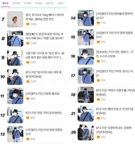 🪷 Статьи об отъезде Чимина в Лос-Анджелес заняли 14 из 30 позиций в списке самых популярных статей в разделе развлечений на Naver
