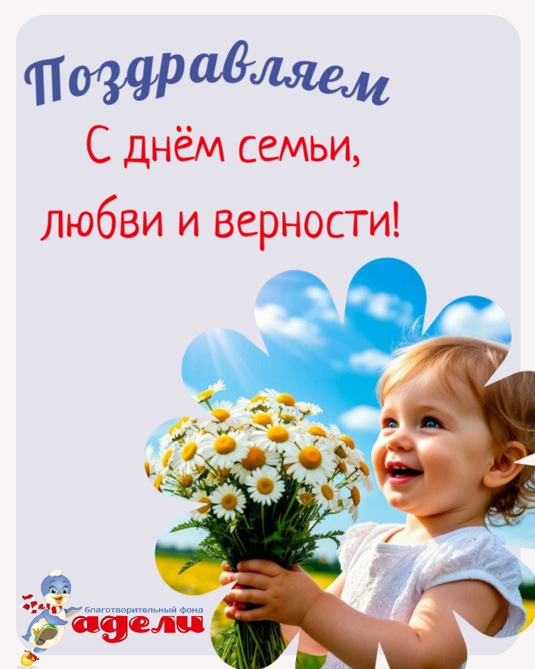 Поздравляем с Днем семьи, любви и верности! 🌸 Семья — это главная опора, особенно для деток, которым нужна особая забота. Благодарим всех мам за их нежность и терпение, и особо отмечаем пап — ваша поддержка, сила и вера в ребенка незаменимы! Наши незаменимые помощники! Благодаря вам любовь и верность в семьях подопечных становятся сильнее. Пусть ваши сердца согревает благодарность тех, кому вы помогаете! 💖 Благотворительный фонд "Адели" www.adeli-club.com #ДеньСемьиЛюбвиИВерности #ОсобоеДетство #РодителиГерои #СемейноеСчастье #АДЕЛИ