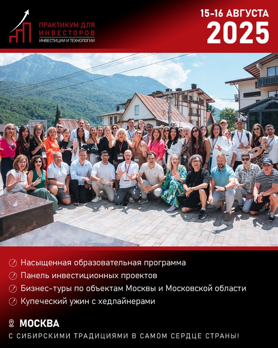 В Москве пройдет IV Практикум для инвесторов. Мероприятие состоится 15 и 16 августа. Двухдневная программа включает нетворкинг с более чем 100 участниками. Также в программе: 🔹 Лекции от экспертов-практиков сфер строительства, девелопмента, инвестиций 🔹 Презентация инвестпроектов с доходностью от 20% 🔹 Бизнес-тур по инвестиционно-привлекательным объектам Москвы и Московской области 🔹 Купеческий ужин с хедлайнерами мероприятия Практикум будет полезен всем, кто связан с инвестициями в недвижимость, желает создать для себя крепкий и надежный портфель активов. Оставить заявку на участие по выгодной стоимости можно по ссылке. Реклама. ИП Девяткова Наталья Геннадьевна, ОГРНИП 318723200016954, ИНН 720403856519