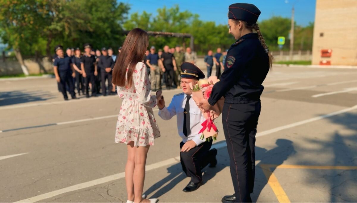 Сотрудник тульской полиции сделал предложение возлюбленной во время построения на плацу в День семьи, любви и верности