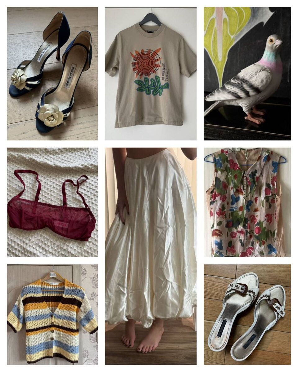 Наконец-то ЛЕТО🔥 вот и шелковые юбочки и босоножки пригодились #авитолоты Босоножки Manolo Blahnik 10000₽ Футболка Jaquemus 11900₽ Клатч голубь Jw Anderson 105000₽ Бюстгалтер Petra 2500₽ Юбка Pervert 17000₽ Топ-блуза Dries van Noten 8215₽ Вязаный топ Zara 1100₽ Мюли LV 5000₽