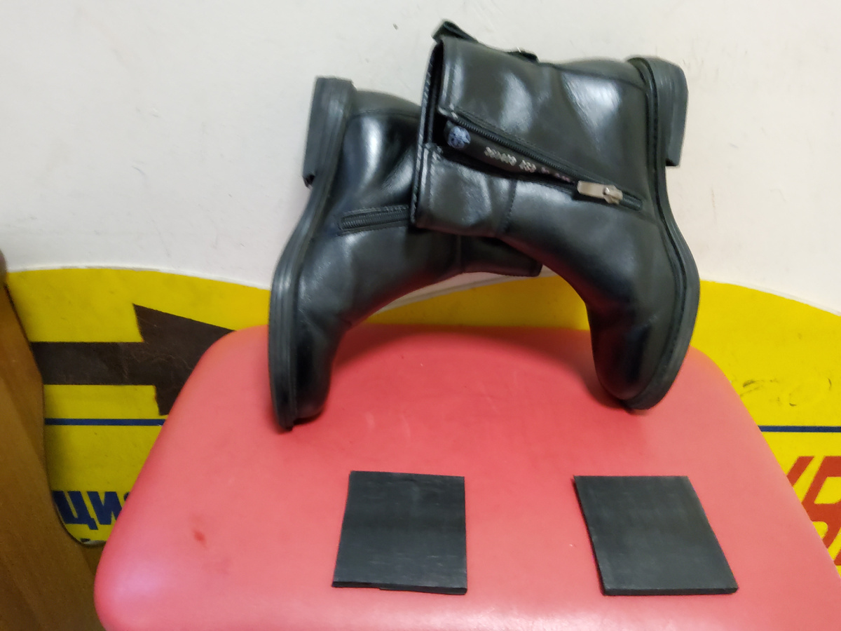 Исправляю фабричный брак. Пара сильно заваливается назад( заготовку на шесть см., затянули на колодку три см.). Сейчас, неспеша, сделаю правильные , наборные каблуки с хорошей набойкой и будет полный порядок. Можно будет нормально ходить клиентке, а не только с горки.....