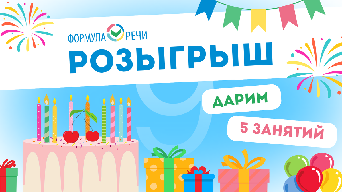 Сегодня в Формуле Речи большой праздник — центру исполняется 9 лет. За это время мы помогли более чем 2500 взрослым и маленьким ученикам из 32 стран исправить свою речь. Это большое достижение, и мы гордимся тем, что занимаемся таким полезным делом. 💌 Спасибо, что и вы, наши читатели, остаётесь с нами. В честь праздника мы подготовили для вас розыгрыш, главный приз которого — бонусные занятия с логопедом в Формуле Речи. Чтобы участвовать и получить гарантированный подарок подпишитесь на Формулу Речи в телеграм и оставьте комментарий под закрепленным постом. желаем удачи! 🎁