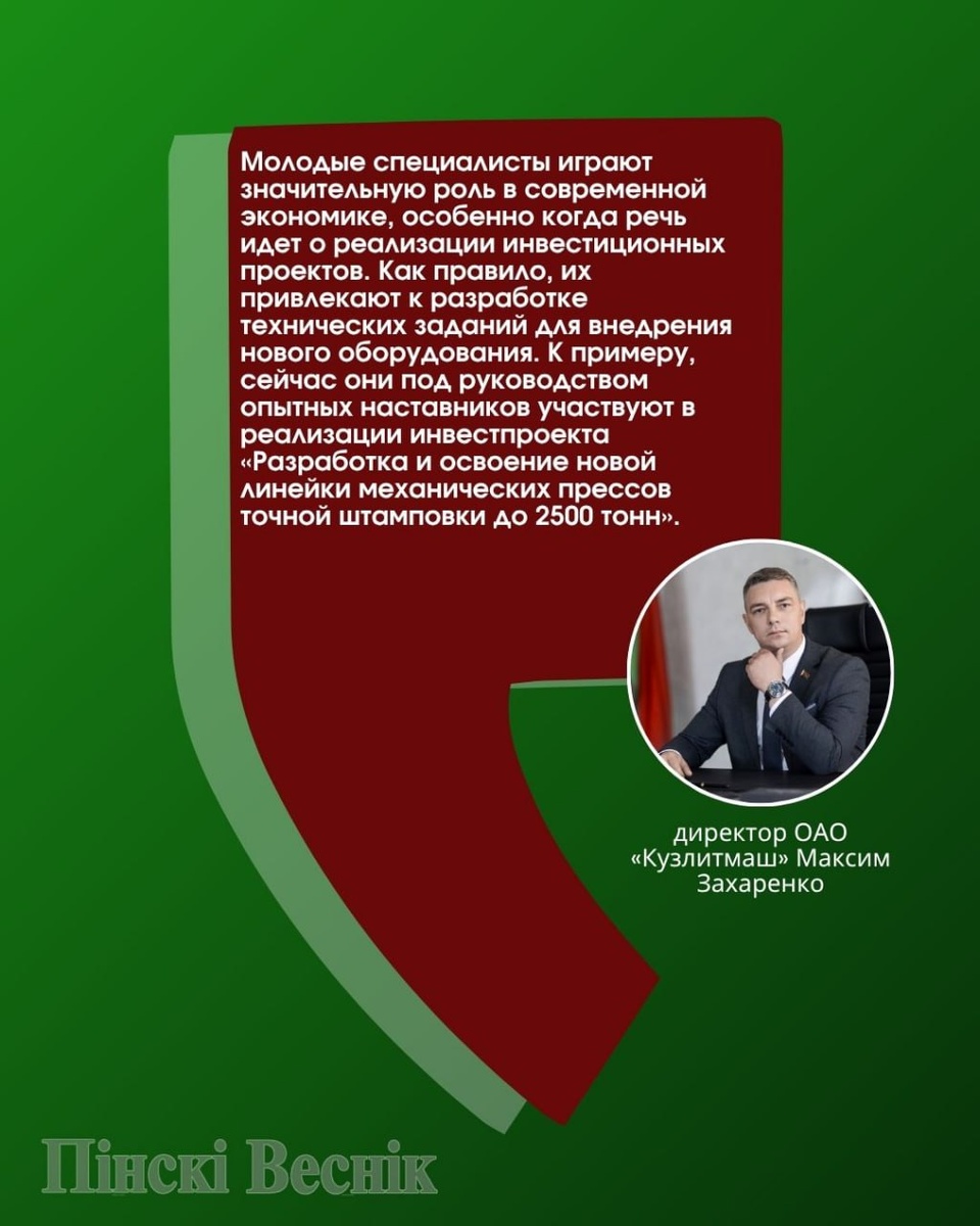 ✅С 1 августа на предприятии «Кузлитмаш» приступят к работе более 30 выпускников вузов и сузов. Вступительная кампания в разгаре. Первыми в вузы и колледжи поступают ребята по целевым направлениям. О том, почему важна подготовка молодых кадров по целевому назначению и как налажено сотрудничество предприятия, дающего такие направления, со средними учебными заведениями, рассказал директор ОАО «Кузлитмаш» Максим Захаренко. ПОДРОБНОСТИ @Пинский Вестник ЮТУБ | САЙТ| ИНСТ | ВК | ОК | ФЕ | Прислать новость