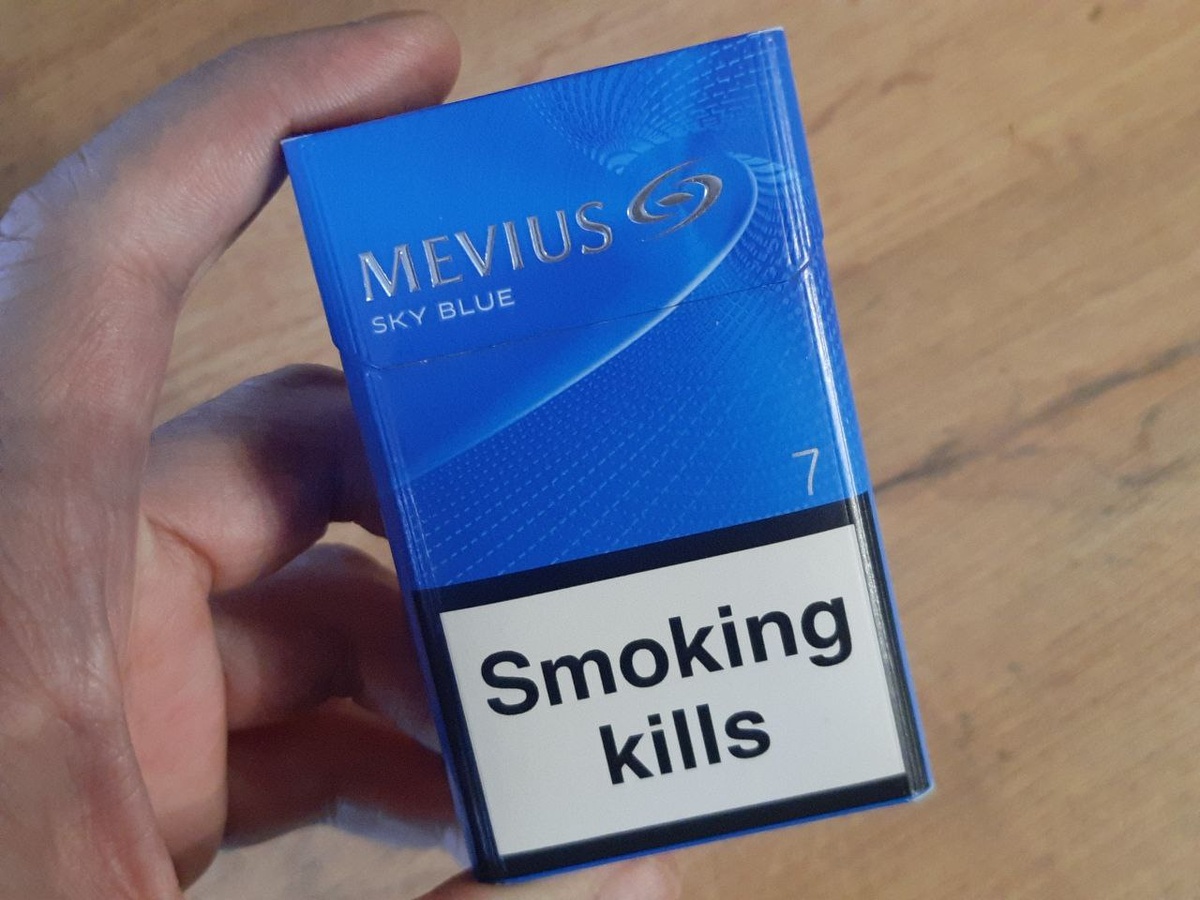 Всем привет! По случаю приобрел у перекупов пачку сигарет Mevius. По словам человека, который данную продукцию реализует, это сигареты из европейского магазина беспошлинной торговли Duty Free. Более точной информации у него нет. У меня – тем более. Будем пробовать, что есть. А там уже и строить предположения. Внимание! Данная публикация предназначена для совершеннолетних граждан – прежде всего, для тех, кто курит. Я не рекламирую табачную продукцию и продавцов, и не пропагандирую курение. Записка основана на личном мнении и носит ознакомительный характер. Курение вредит вашему здоровью! Mevius – это японский бренд, который ранее выпускался под названием Mild Seven. Мне приходилось пробовать эти сигареты, произведенные на родине – в Японии. А также имел «удовольствие» дегустировать Mevius, произведенный в нашей стране. Обзоры на канале были. По поводу оригинальной японской версии ничего плохого сказать не могу. Однако версия, выпущенная в родном Отечестве, слегка разочаровала. Такое впе