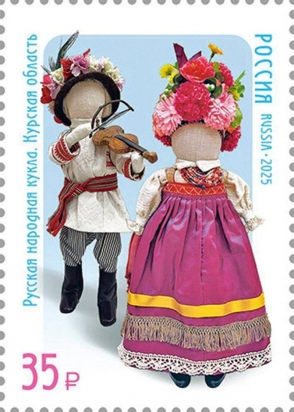 В России и Доминиканской Республике выпустили совместную серию почтовых марок "Декоративно-прикладное искусство России". На марке, посвященной России, изображены русские народные куклы в традиционных нарядах Курской области.