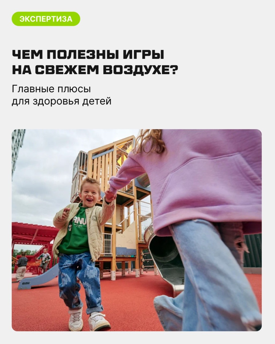 Детство — время открытий, движения и радости! И нет лучшего места для этого, чем площадки под открытым небом. Вот несколько причин, почему игры на свежем воздухе необходимы для здоровья детей ⬇️ 🟢 Физическое развитие Активные игры укрепляют мышцы, улучшают координацию и выносливость. Мы проектируем пространства с учетом возраста, физического развития и интересов детей. 🟢 Укрепление иммунитета Свежий воздух насыщает организм кислородом, улучшает работу легких и помогает бороться с вирусами. Дети, которые часто играют на улице, реже болеют и быстрее восстанавливаются. 🟢 Развитие социальных навыков Игры во дворе учат общаться, договариваться и работать в команде. Это важный этап формирования личности и уверенности в себе. На наших площадках дети сталкиваются с ситуациями, которые требуют совместных решений, что способствует развитию социальных навыков. 🟢 Психоэмоциональное здоровье Солнечный свет и движение снижают стресс, улучшают настроение и помогают лучше спать. Яркие дизайны
