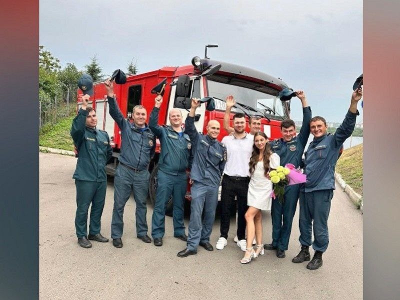 Красноярские спасатели МЧС оригинально поздравили коллегу со свадьбой История произошла во время регистрации брака Андрея и его избранницы Софьи в ЗАГСе Кировского и Свердловского районов. Неожиданно для молодожёнов раздался звук сирены пожарной машины. Андрей и Софья расстроились, что праздник прервётся из-за возгорания. Но тревога обернулась приятной неожиданностью: в зал с цветами вошли коллеги жениха, прокричали «Горько!» и поздравили пару. @Источник: https://t.me/vesti_krsk