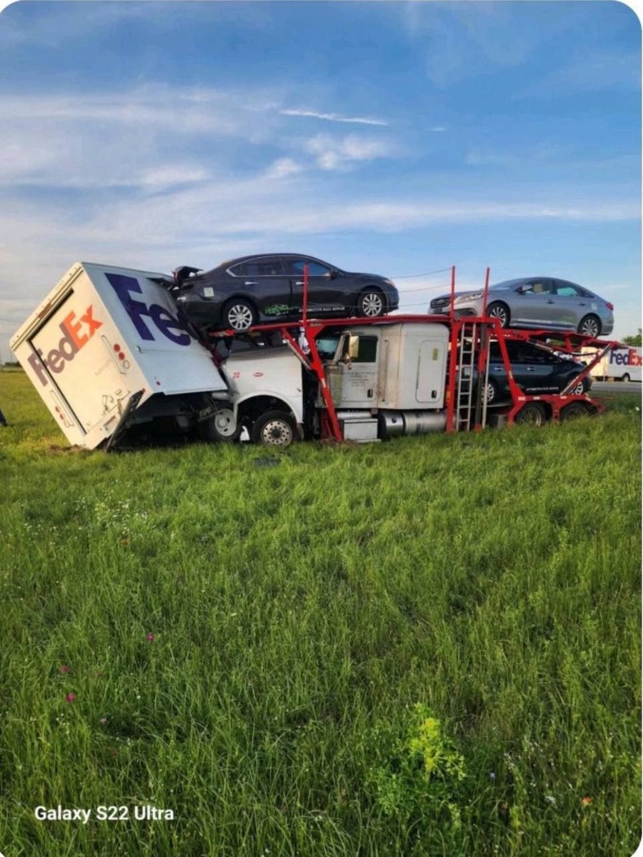 В США водитель автовоза врезался в грузовик с посылками: момент ДТП попал на видеорегистратор