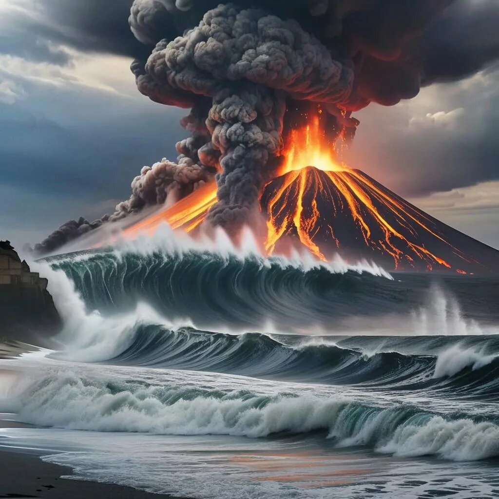 Цунами обрушилось внезапно, с неумолимой силой сокрушая все на своем пути. Волны высотой десятки метров вздымались над землей, сметая дома, мосты, дороги... Стихия была безжалостной, оставляя за собой лишь руины и горе.