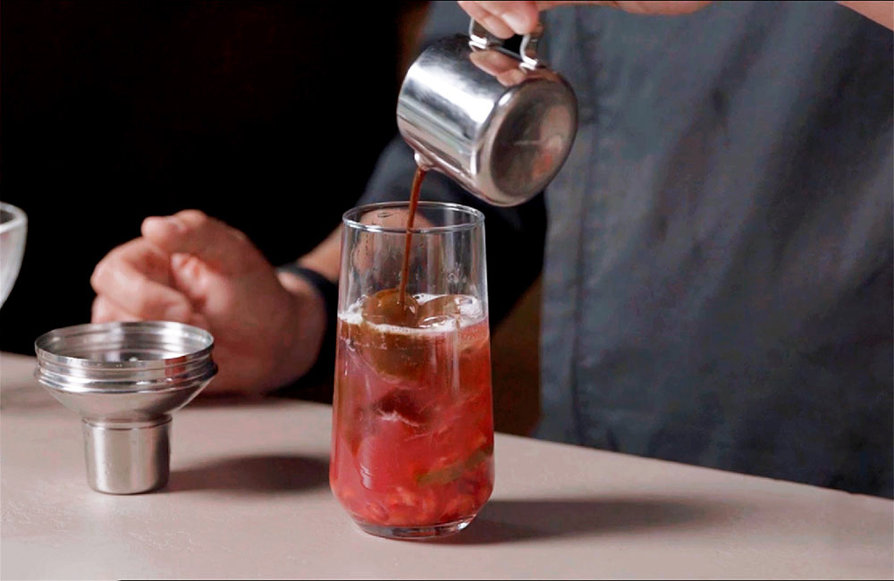 Чай или кофе? Выбирать один из двух вариантов необязательно, если вы решитесь приготовить этот ароматный напиток с ярким вкусом граната. 1. Заварите чай с жасмином и остудите. Не слишком крепко, чтобы избежать горечи, и охлаждать лучше естественным образом, чтобы сохранить вкус. 2. В шейкер положите два кружочка лайма, слегка раздавите. Для этой манипуляции лучше всего подойдет мадлер — барный инструмент для раздавливания фруктов, трав или ягод. 3. Добавьте зерна граната и тоже подавите. При выборе граната обращайте внимание на вес. Как правило, чем тяжелее гранат для своего размера, тем он сочнее. 4. Налейте жасминовый чай и сироп в шейкер и хорошенько взбейте. 5. Охлажденный бокал наполните льдом 6. Налейте гранатовый чай. Убедитесь, что в бокале осталось место, чтобы разлить кофе. 7. Сверху налейте эспрессо. Идеально подойдут Poetti Leggenda Oro, Original, Neuro Special Edition или любая 100% арабика. Горячий кофе добавьте в готовый напиток. 8. Украсьте напиток яркими ягодами. Арома