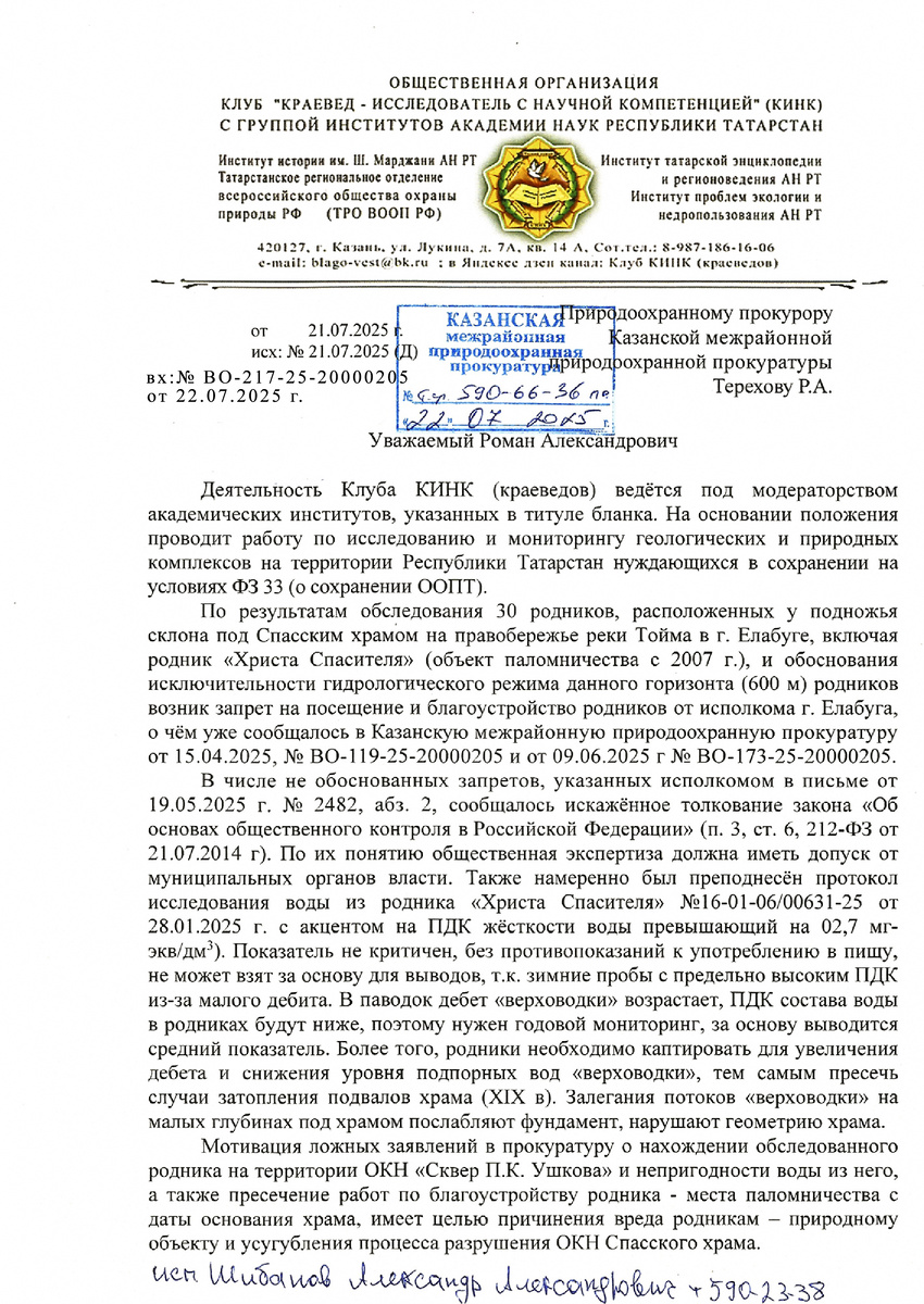 Письмо прокурору. Исполком Елабуги с ложными обвинениями.