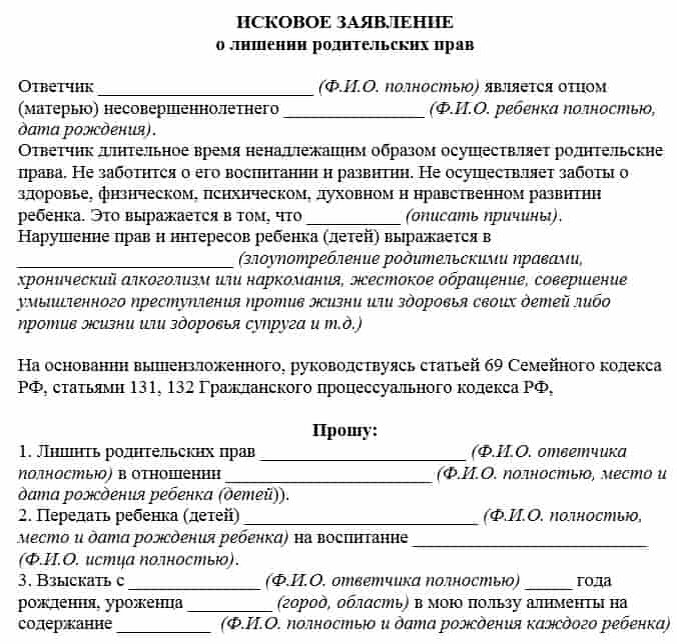 Иск о лишении родительских прав матери составляется в соответствии со статьями 131, 132 ГПК РФ.