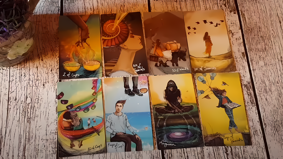 Сегодня я делаю расклад, который назвала «Проходи, садись, расскажи: с чем пришел?». Мы разберем, что за мужчина стучится в твою жизнь, девочки, что у него на душе, что он хочет тебе сказать и зачем вообще пожаловал. Это не просто расклад, это разговор по душам с картами, чтобы выведать всю правду о его намерениях, его сердце и его пути. Карты сразу выкладывают его портрет, и, девочки, это интересный персонаж! Туз Мечей, Десятка Мечей и Двойка Кубков показывают мужчину, который ищет свое место в жизни. Он умный, интеллектуальный, с ясным умом, как будто всегда знает, что сказать. Туз Мечей говорит, что он человек с острым разумом, который любит разбираться в деталях, анализировать, держать все под контролем. Но за этой четкостью скрывается тяжесть. Десятка Мечей кричит, что у него за плечами сложная судьба — он пережил боль, потери, может, даже предательство. Эта рана до сих пор с ним, как груз, который он таскает, но не показывает. И вот что важно, девочки: несмотря на эту тяжесть, он не разучился любить. Двойка Кубков показывает, что в нем горит желание любви, близости, настоящих чувств. Он тянется к человеку, который примет его, выслушает, даст тепло. Он как будто ищет спасение в отношениях, но осторожно, как кот, который боится обжечься. Маг добавляет, что он человек увлеченный, с горящими глазами. У него есть хобби, страсть, что-то, чему он отдает всего себя — будь то работа, творчество или даже какая-то мечта. Он часто витает в облаках, но его приземляет этот груз прошлого, который не дает ему взлететь по-настоящему. Паж Кубков и Десятка Кубков говорят, что он мечтает о любви, о семье, о чем-то светлом и чистом, как в сказке. Но Десятка Жезлов намекает, что его мечты омрачает усталость. Он хочет отгородиться от негатива, хочет, чтобы его жизнь была как чистое море, где нет боли. Его натура — это смесь огненной страсти, острого ума и глубоких шрамов. Он хочет любви, но боится снова оступиться, боится, что его сердце опять разобьют.