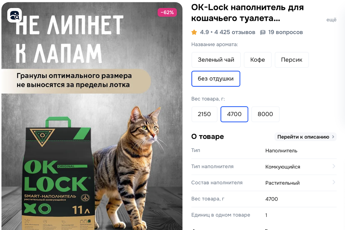 Если у вас есть кот, вы точно знаете, что "туалетный вопрос" — это не просто про гигиену. Это про запах. Про атмосферу в доме. Про то, как вежливо улыбаться гостям, пока носом чуешь то, что не положено. Мы с этим жили. Терпели. Маскировали. Пока не перешли на растительный наполнитель OK-LOCK. Нашли на Озоне, отзывов было много и все положительные. Решили проверить — правда ли он "запирает" запах на замок? И… честно, были готовы разочароваться, так как это не первая попытка найти “свой” наполнитель. Но не разочаровались Первое впечатление — легкий. Сыпется мягко, почти без пыли. Мы взяли вариант без отдушки — наш пушистый аристократ парфюмерию не переносит.. Насыпали стандартные 7 см. Гранулы бежевые, аккуратные. Кот подошел, понюхал, одобрил. Пошел по делу. Через 5 минут — проверка. Никакого запаха. Совсем. Даже если сунуть нос к самому лотку (да, мы проверили!). На следующий день впервые не услышали запаха по утру. Это был почти праздничный момент. Комки образуются плотные, их легко у