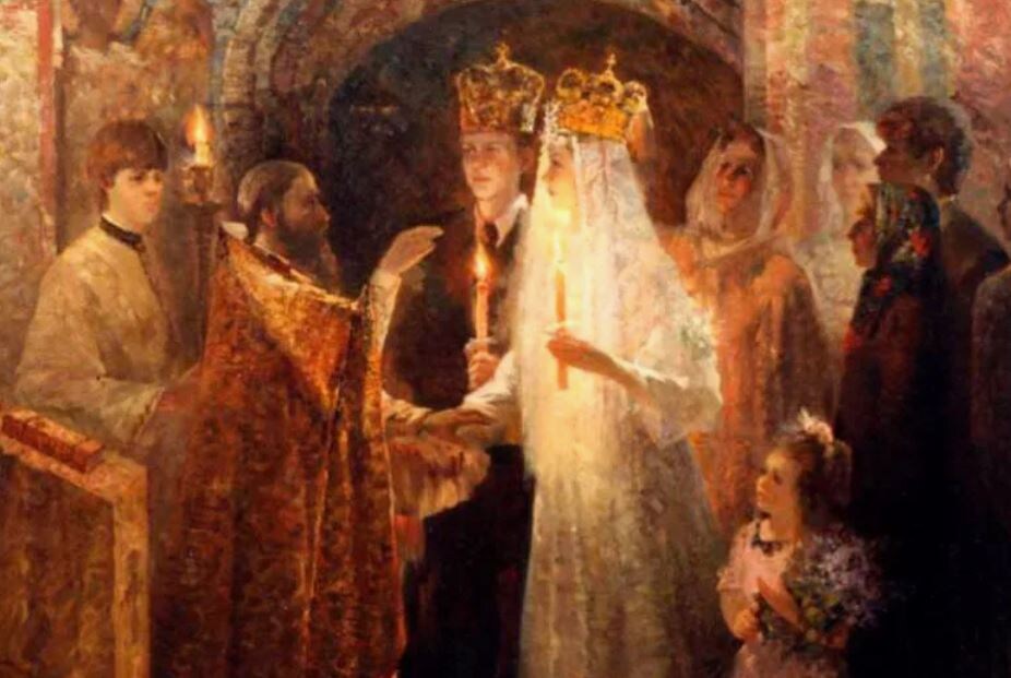 Церковь Святой Троицы украсили к торжеству. Иконы в золотых окладах отражали огоньки горящих свечей, пространство заполнил запах ладана. Много народу собралось — соседи-помещики, городские знакомые, крестьяне из обеих деревень толпились на улице поглазеть на молодых .