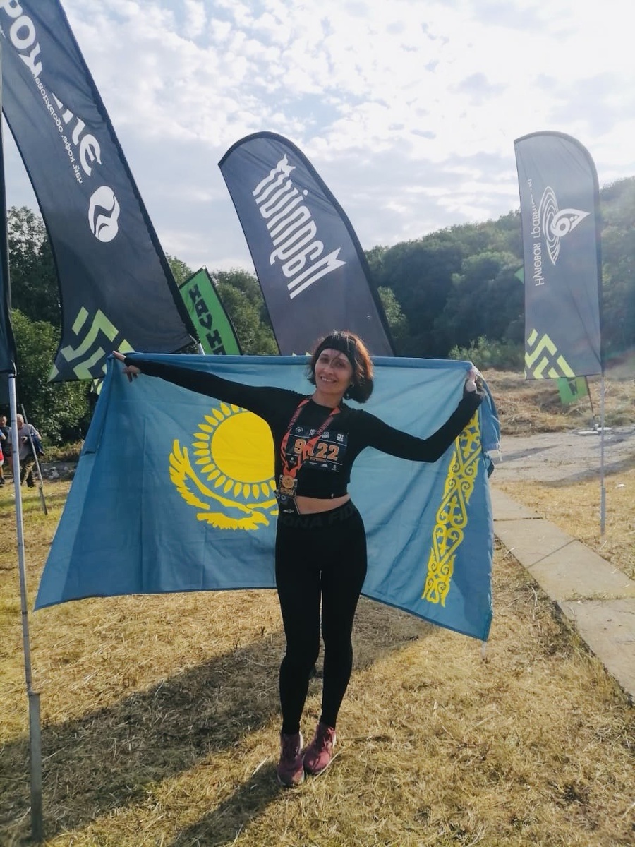 Флаг Казахстана на вершине Бештау, как символ дружбы и здорового образа жизни