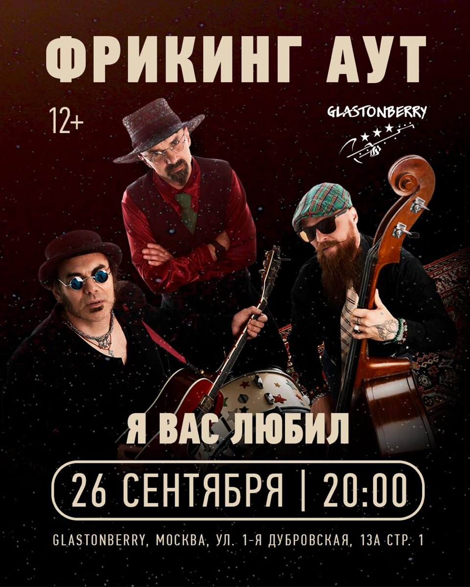 🎤 ФРИКИНГ АУТ | КОНЦЕРТ “Я ВАС ЛЮБИЛ” 📅 26 сентября 🕗 Начало в 20:00 📍 Glastonberry Club | Москва 🔥 Готовы раскачать осень? Приготовьтесь к незабываемому музыкальному вечеру с группой Фрикинг Аут на нашем специальном концерте "Я вас любил"! Вас ждёт мощный коктейль из авторских треков и любимых каверов — от душевных баллад до танцевальных хитов, которые вы будете петь вместе с нами. 💃 Танцы, музыка, драйв и настоящие эмоции — всё это мы приготовили, чтобы сделать ваш вечер особенным. ✨ Не пропустите — этот концерт станет ярким началом музыкальной осени! 🎟 Билеты по ссылке: freakingout.ticketscloud.org 📣 Зовите друзей — будет жарко! #фрикингаут #концертмосква #glastonberry #живойзвук #кавергруппа #яваслюбил