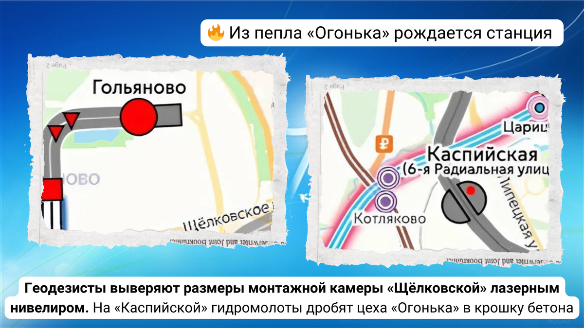 официальные отчеты. Давайте вместе разберемся, что же на самом деле происходит с нашей Москвой. Поехали? Во-первых, покажем монтажную камера за «Щелковской» на будущем перегоне 🚇 «Щёлковская» – «Гольяново» Арбатско-Покровской линии. Завезены две буровые установки. Продолжают подвозить тюбинги для строительства будущих тоннелей. Во-вторых, спешим сообщить, что продолжается активный снос строений завода «Огонек», попавших в зону строительства 🚇 станции «К