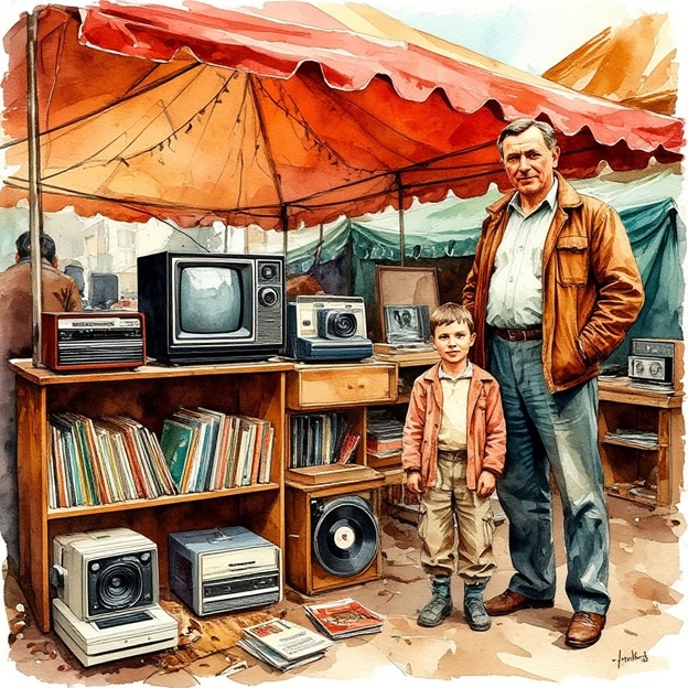 Вчера папа сказал: «Максим, собирайся, пойдём на блошиный рынок!» А сам так загадочно улыбался, будто собирался не старый хлам покупать, а настоящий пиратский клад откапывать.