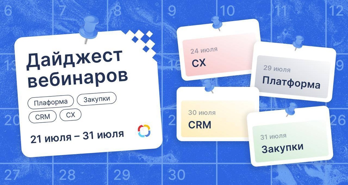 📆 КАЛЕНДАРЬ СОБЫТИЙ ➡️ 24 июля 11:00 Вебинар «Спасибо, я сам. Как снизить нагрузку на КЦ без падения NPS» Ведущий: Гайдамак Иван Подробнее ➡️ 29 июля 11:00 Вебинар «Автоматизация на рынке с неопределенными перспективами: падение со взлетом» Ведущий: Чепакин Андрей Подробнее ➡️ 30 июля 11:00 Вебинар «Продажи без потери лидов и времени» Ведущий: Веденеева Ольга Подробнее ➡️ 31 июля 11:00 Вебинар «Топ-5 факапов в автоматизации закупок: как избежать ошибок при выборе и внедрении SRM» Ведущий: Андрей Брындин Подробнее До встречи в эфире!
