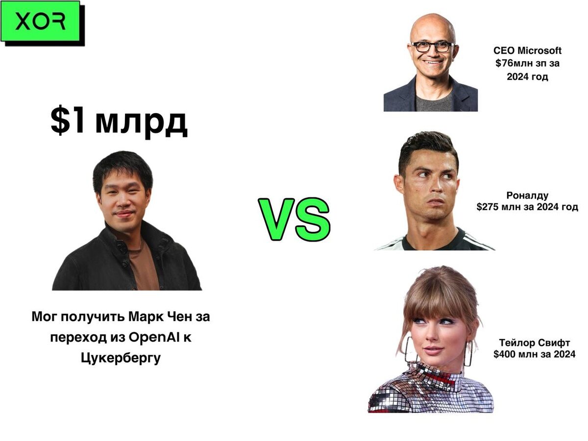 💰 Цифра дня: Цукерберг предлагал до $1 млрд за переход OpenAI-исследователю — но получил отказ