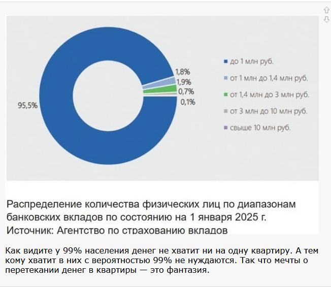 — диапазон от 1-20 миллиона на вкладах — это 32 триллиона рублей. Даже с учетом вторички.