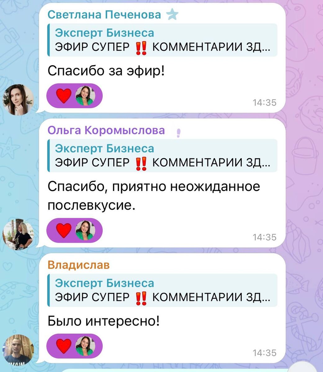 Отзывы от предпринимателей, кто был на эфире в этот понедельник! Не пропустите новый шанс для вашего роста и развития бизнеса. Как видите, запись не всегда сохраняется, а вот информация важная и нужная может пройти мимо…. Просто в 28.07 ПОНЕДЕЛЬНИК 12:00 мск ВЫ БУДЕТЕ НА РАБОЧЕМ МЕСТЕ, А ИМЕЕНО НА БИЗНЕС-РАССТАНОВКЕ В ЭТОМ КАНАЛЕ 🤝