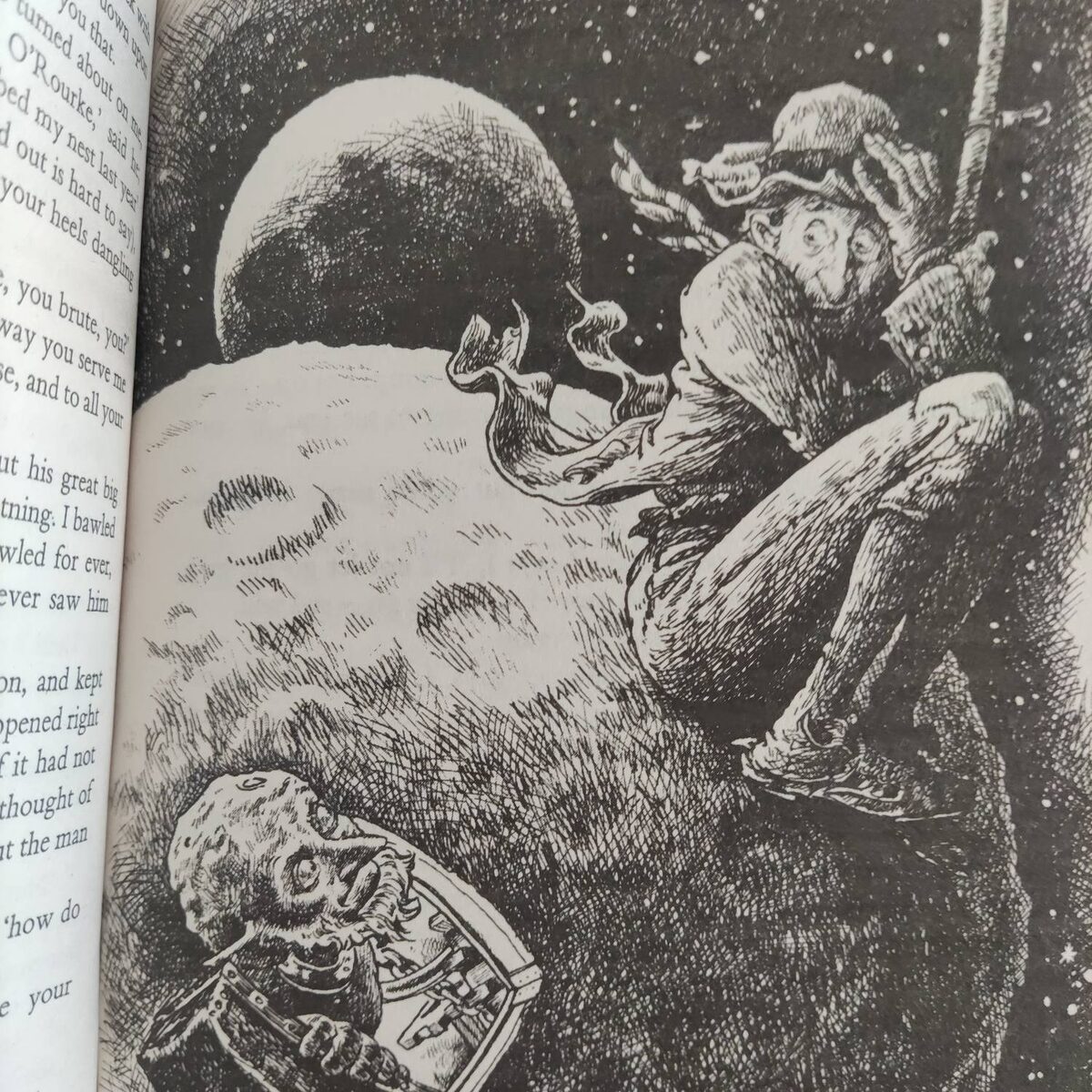 - Ну, тогда бы никогда не встречаться бы с такими, как ты, - сказал я себе, - и, сказав ему "сердечные" пожелания на ирландском, которые, я надеялся, он не поймёт, я слез с его спины, ухватился за серп и сел на Луну. Вы даже не представляете, какая холодная она была...