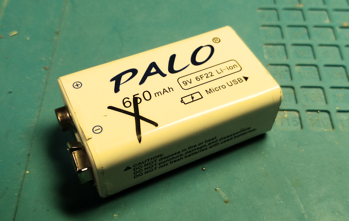 Недавно у меня "полетел" литий-ионный аккумулятор "Крона", который использую в радиоприемнике 433 МГц. "Крона" под брендом Palo, вот такая: После года работы, а задействовалась она в основном только в летние месяцы, стало "скакать" внутреннее сопротивление батарейки. Вот оно приемлемое, и под нагрузкой 30-50 Ом напряжение на её выходе совсем не проседает, а иной раз смотришь, не работает; не то что 50 Ом, - 1 кОм (!) присоединяешь к выводам, а на них напряжение до 1-2 В падает. Непорядок, "крякнула", значит. Родилась поговорка - что у "Palo", то пропало...)) Надо разобрать и посмотреть внутренности. Ранее публиковал статью на эту тему здесь. Из неё следовало, что USB "Кроны" бывают с преобразователем, - они дают точно 9 В, а бывают в виде двух последовательно соединенных 3,7 В Li-Ion аккумуляторов в обрамлении с контроллером заряда-разряда, - у этих на выходе 7,2-8,4 В. У меня как раз такая сломалась. Смотрим внутренности. Как и ожидалось, это два 3,7 В Li-Ion элемента с контроллером.