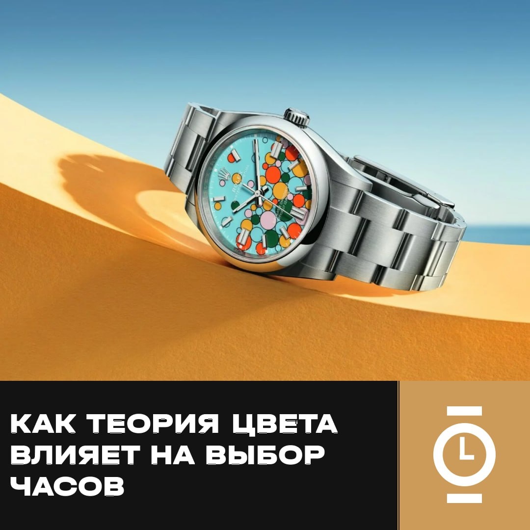 КАК ТЕОРИЯ ЦВЕТА ВЛИЯЕТ НА ВЫБОР ЧАСОВ #факты_WD Цвет циферблата — не просто краска. Это результат сложных взаимодействий света, материалов и восприятия. Чтобы грамотно подбирать часы, стоит понимать основы цветовой теории. Цвет зависит от окружения С физической точки зрения, ни один объект не обладает «собственным» цветом — всё зависит от того, как он отражает или поглощает свет. Визуальное восприятие может сильно меняться в зависимости от фона, материалов корпуса, цвета ремешка и даже тона кожи владельца. Например, стрелки на синем фоне могут выглядеть иначе, чем на зелёном, хотя сами по себе они не меняются. Не все цвета одинаково достижимы На экране компьютера создать любой цвет легко — там свет смешивается напрямую. В реальности всё сложнее: пигменты взаимодействуют не как свет, и получить нужный оттенок непросто. Именно поэтому эмалевые и лакированные циферблаты необычных цветов стоят дорого. Яркая керамика — ещё один пример сложности: стабильные и насыщенные цвета требуют вы