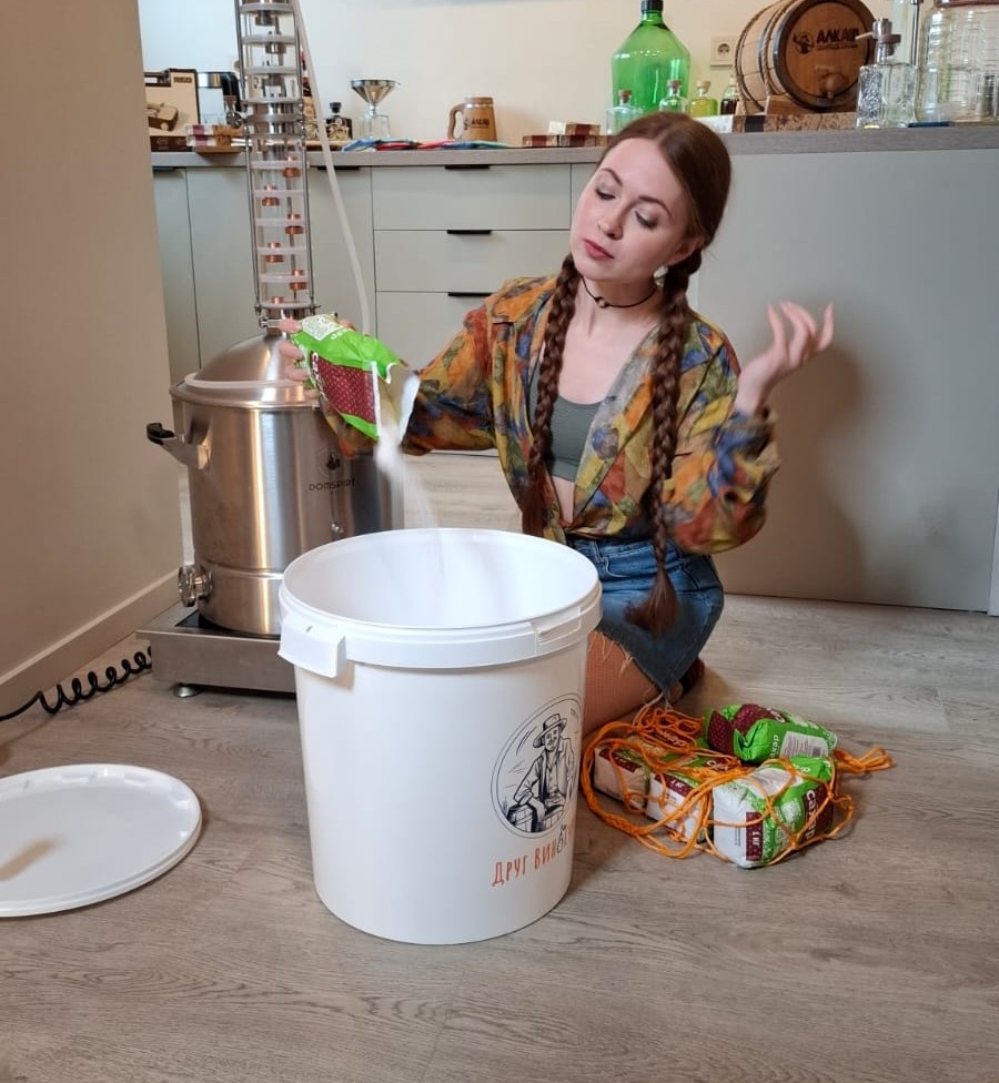 Чтобы получить самогон, ставим простую сахарную брагу, которая состоит из сахара, дрожжей и воды.