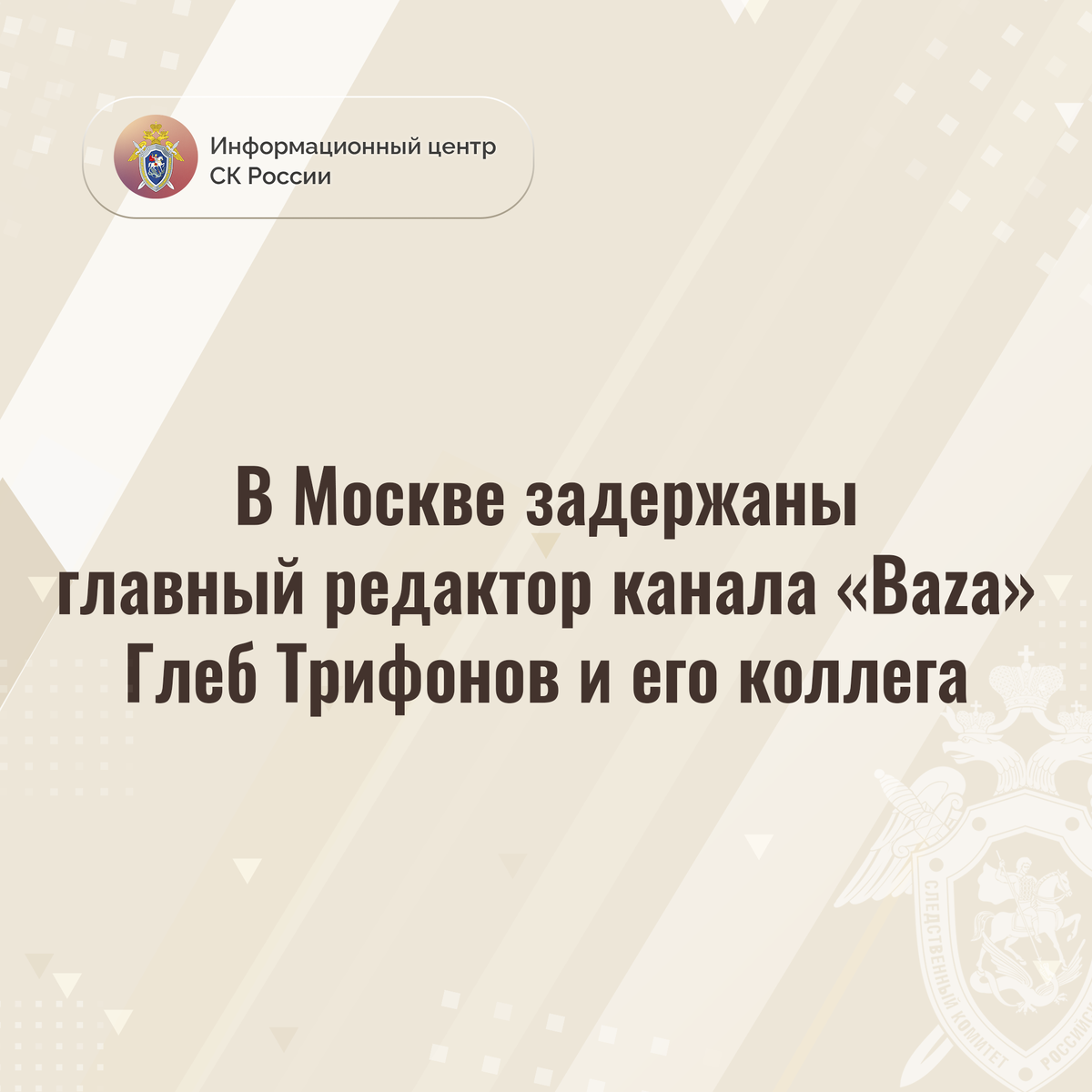 Следователями столичного СК России задержан главный редактор канала «Baza» Глеб Трифонов и его коллега, подозреваемые в даче взятки (ст. 291 УК РФ). Они доставлены к следователю для допроса.