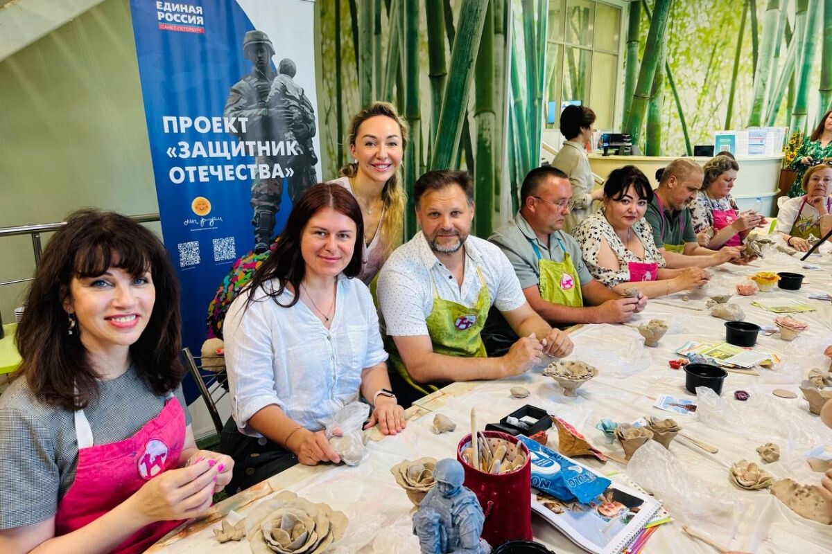 Более 2000 жителей Санкт-Петербурга участвуют в создании скульптуры «Защитник Отечества», инициированной «Единой Россией». В рамках проекта под руководством художника Валерии Лошак горожане изготовили свыше 2200 керамических бутонов для пьедестала памятника. К мастер-классам подключились депутаты (включая руководителя фракции ЕР в Законодательном собрании Петербурга Павла Крупника), семьи участников СВО, ветераны, студенты и активисты. Изделия проходят обжиг перед монтажом. Композиция изображает воина с ребёнком на руках. Её установят на шарообразном основании из цветов. Презентация запланирована на конференции регионального отделения партии в конце года.