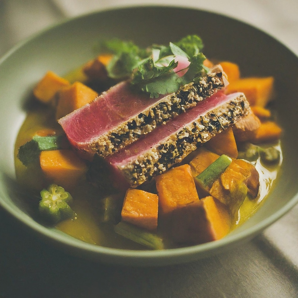 Мальдивско-карибский тунец с пряным сладким картофелем: экзотический фьюжн за 50 минут