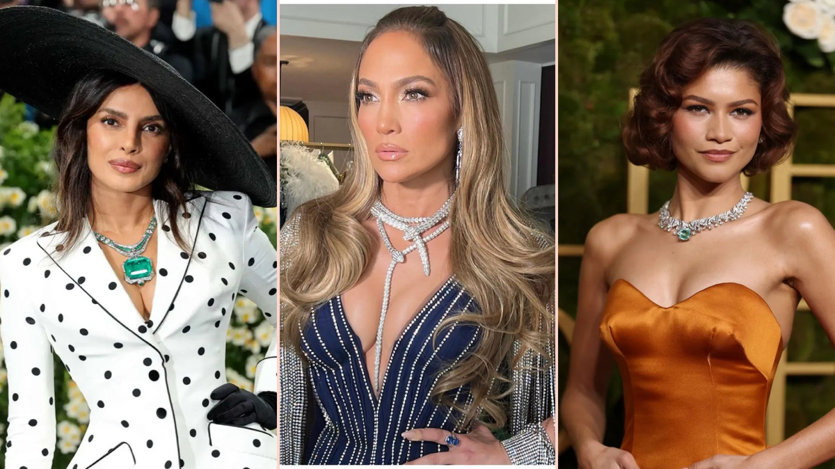 На Met Gala 2025 актриса Приянка Чопра Джонас предстала в платье от Оливье Рустена из Balmain, украшенном изумрудным колье Magnus Emerald от Bvlgari.