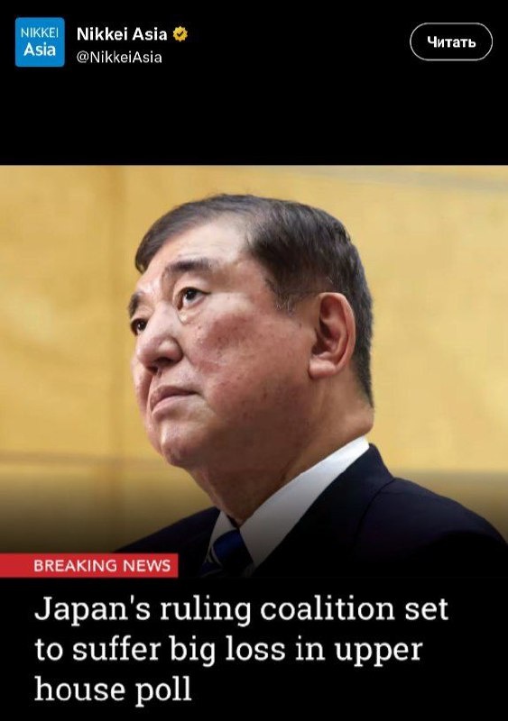 В ответ на пост Как и ожидалось, самураи добавят волатильности на мировых валютных рынках на этой неделе «Правящая коалиция Японии, по всей видимости, понесет значительную потерю мест на выборах в верхнюю палату парламента страны из-за проблем с инфляцией и иммиграцией» @marketheart
