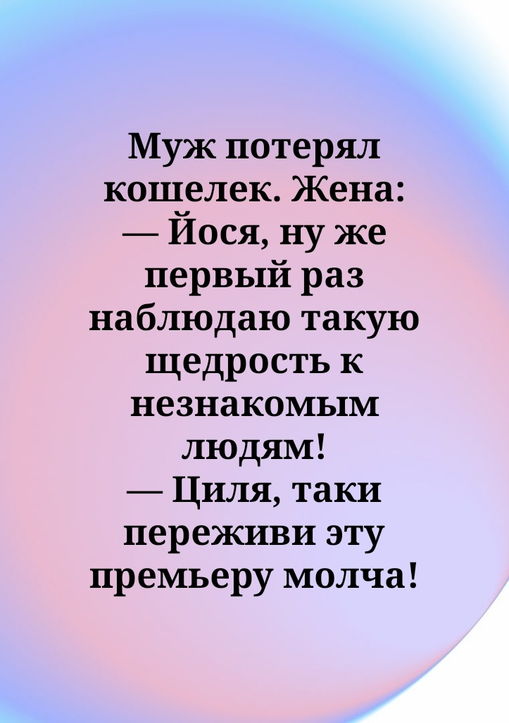 🔸На вопрос жены: «Ты что, опять на рыбалку?» муж отвечает: «Я иду туда, где прийду в себя и буду тем кого ты так любишь».
