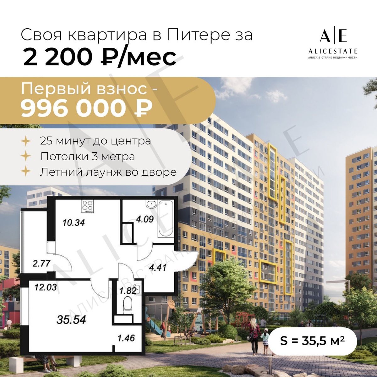 🔥 Своя квартира в Питере за 2200 ₽/мес Платеж ДЛЯ ВСЕХ и действует 1 год. Платеж после тоже комфортный, всего 28 111 ₽/мес. 📍Локация: север города, 25 минут до центра ▪️рядом горнолыжный курорт и чистые озера для купания Жилой комплекс находится в районе с хорошо развитой инфраструктурой: рядом поликлиники, спортивный центр и ТРК. На первых этажах расположены магазины, кофейни, салоны красоты и бытовые сервисы. Есть подземный паркинг с кладовыми и колясочные в парадных. ➡️ Увеличенные окна и потолки 3 метра ➡️ Автоматическая отправка показаний счетчиков ➡️ Летний лаунж во дворе Подписывайтесь, чтобы не потерять ✍️ Нравится квартира? Пишите мне @Alic_Estate или ставьте ➕ в комментариях, расскажу подробности 💙