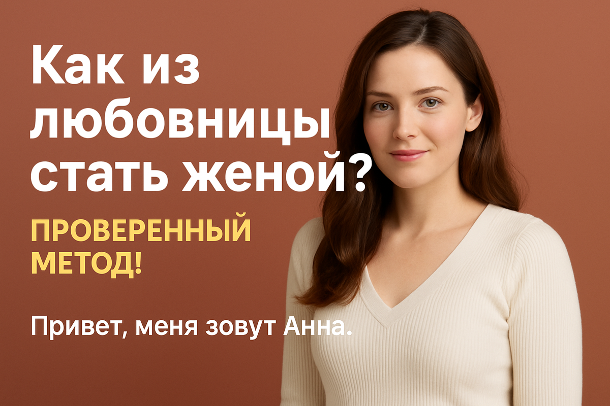 Привет, меня зовут Анна. Если ты читаешь это — значит, ты устала быть «в тени». Ты влюблена. Он с тобой. Но не *по-настоящему*. Не на равных. Не как с женой. А как с… удобной. Тайной. Запасным вариантом. Я была на твоём месте. И смогла это изменить. Расскажу как. --- Мы были вместе 2 года. Звонил, встречались, ездили в отпуск, дарил подарки. Но при этом — жил с ней. С «официальной». Я верила: «Вот-вот он уйдёт. Просто нужно подождать. Понять. Поддержать». Ждала. Подстраивалась. Не требовала. Не задавала вопросов. А внутри всё горело: **Почему я не та, с кем он хочет быть по-настоящему?** --- Подруги говорили: «Бросай его! Найди нормального!» Психологи — «Прими ситуацию. Ты просто его этап». Форумы — «Мужчины не уходят от жен». Но я не хотела бросать. Я хотела **стать той**, ради кого **уходят, женятся, строят будущее**. Я начала искать женщин, которым **удалось стать женой, а не "дополнением"**. И нашла. Оказалось — есть чёткая закономерность. Женщины, которые смогли выйти из роли любо