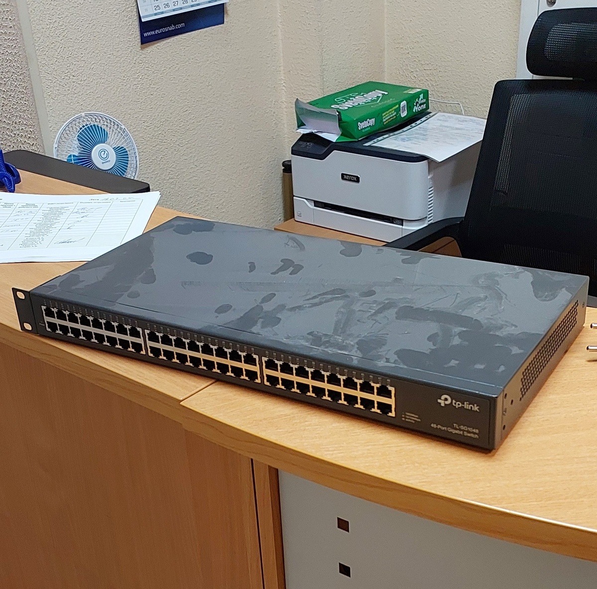 У очередного нашего заказчика, из за грозы, сгорели 24-х портовые коммутаторы. Пришлось оперативно выезжать и заменять сгоревшие коммутаторы на запасные БУ... Сетевой шкаф конечно УЩЕРБНЫЙ, с ним необходимо выполнить работы: - заменить коммутаторы на новые; - перекроссировать кабели на патч-панелях; - прозвонить и маркировать все порты на патч-панели; - подобрать и подключить патч-корды по размерам и цвету; - установить и подключить оборудование к ИБП