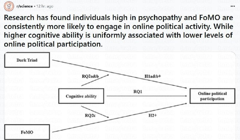 💬 Кто больше всех спорит о политике в интернете? Сингапурские учёные выяснили: самые ярые участники срачей — психопаты (любят манипулировать), нарциссы (жаждут внимания) и просто тупые (поддаются влиянию и срываются в агрессию). Чем ниже критическое мышление, тем выше страсть к баталиям. Нашли себя в этом списке? 😉 #общество #интернет