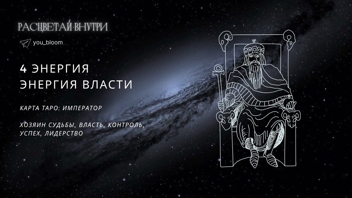 ИМПЕРАТОР, СИСТЕМА, ХОЗЯИН Карта Таро: Император Ключевые слова: Сила, Ответственность, Стратегия, Лидерство, Хозяйственность, Преумножение ⠀ Подходит тем, кто родился 4-го, 31-го числа или в апреле. Энергия 4 — это мощная энергия Управления. Ты словно рождён(а) быть Хозяином положения — выстраивать процессы, управлять людьми, наводить порядок и вести к цели. ⠀ 🔸 У тебя высокая работоспособность и потрясающая организаторская жилка. 🔸 Ты умеешь мыслить логично, видеть слабые места в системе и точно знаешь, как всё улучшить. 🔸 При этом ты не просто начальник — ты покровитель, тот, кто заботится, кто берёт ответственность за других и доводит начатое до результата. 🧱 Император = Система + Сила Ты не боишься задач, которые другим кажутся неподъёмными. Тебе комфортно в мужском окружении и ты, скорее всего, имеешь сильного покровителя. А может, сам(а) становишься таким покровителем для других. ⠀ Ты: ✅ быстро принимаешь решения, ✅ умеешь вести переговоры, ✅ наводишь порядок там, где был