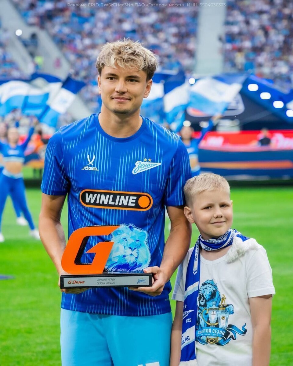Полузащитник «Зенита» Андрей Мостовой сегодня перед матчем с «Ростовом» получил награду «G-Drive. Лучший игрок» за сезон-2024/25 из рук преданного болельщика сине-бело-голубых Дениса Тиронина.