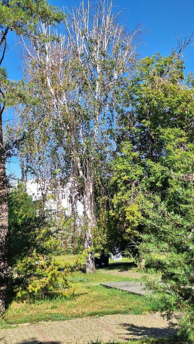 Вот так в центре у Дома Советов: фонтан еле работает, плавает дохлый голубь, березу не обрезали, газон не поливают