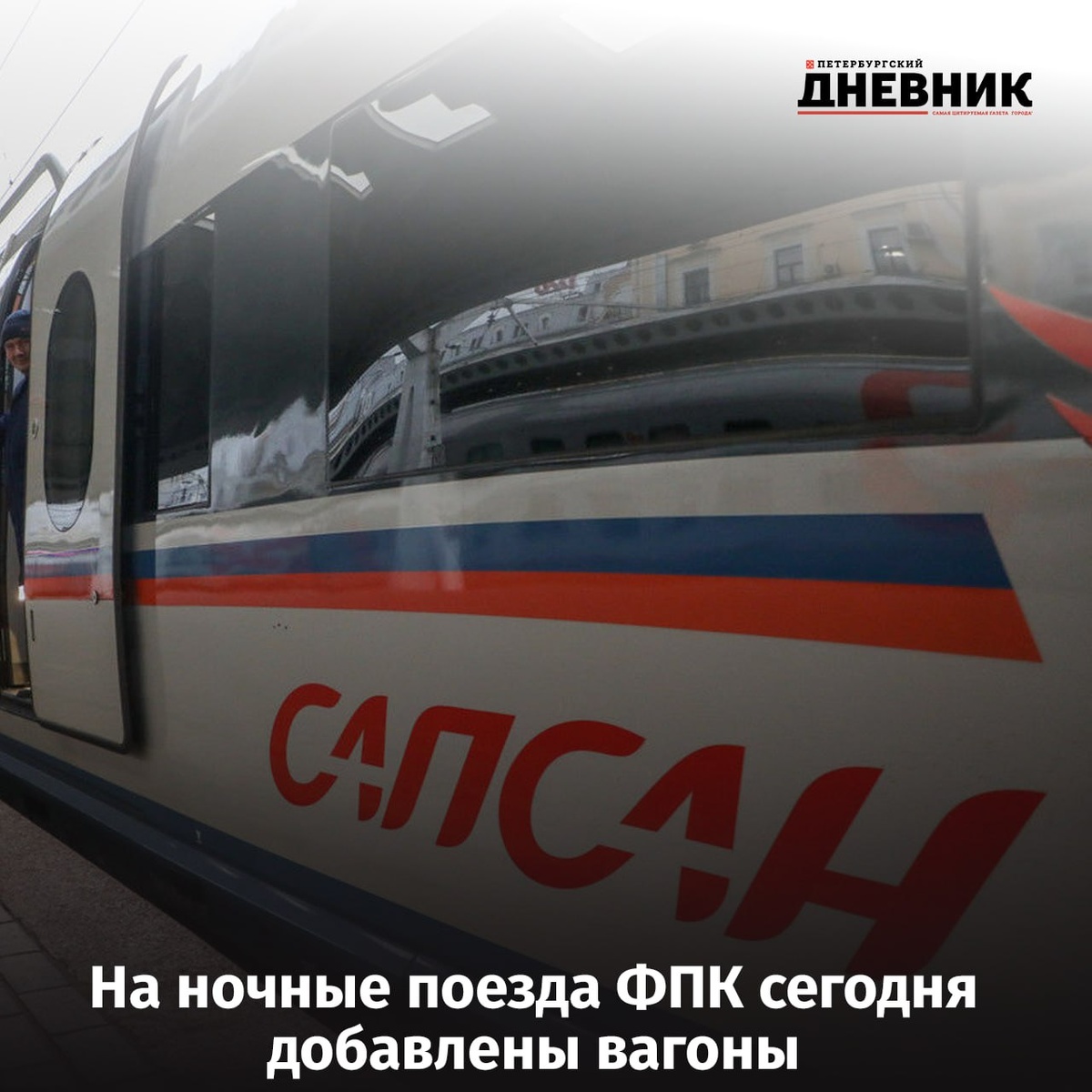 📆 РЖД назначили дополнительный «Сапсан» до Москвы В связи с отменой части рейсов в Москву, компанией ОАО «РЖД» назначен дополнительный высокоскоростной поезд «Сапсан». Поезд № 755, отправление с Московского вокзала 21 июля в 06:40. Также на ночные поезда ФПК сегодня добавлены вагоны. Билеты можно приобрести в кассе РЖД, расположенной на втором этаже терминала аэропорта Пулково, на официальном сайте ОАО «РЖД», в мобильном приложении «РЖД Пассажирам». Фото: Александр Глуз Петербургский дневник