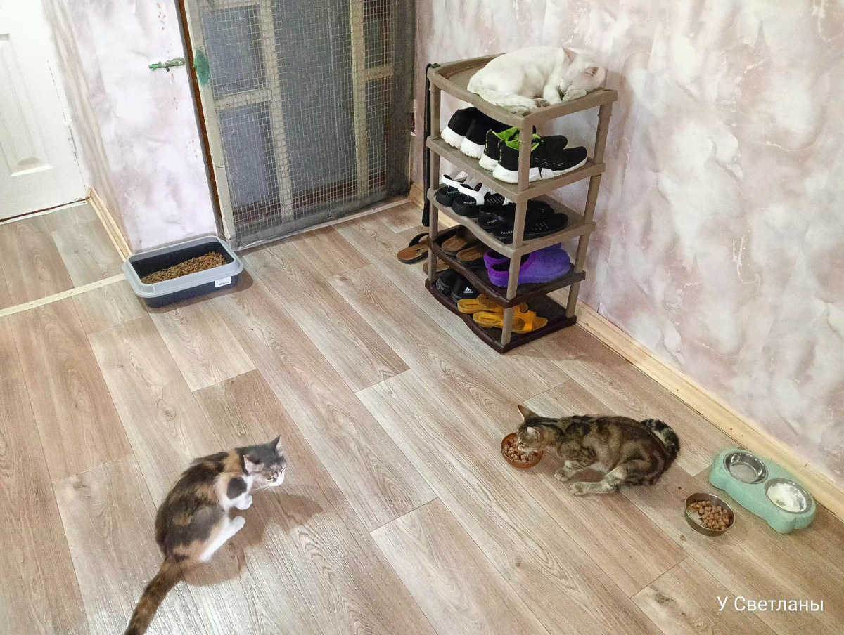 Мы спим с открытым окном с трёх-четырёх часов ночи, мы его открываем на половину и они в это время убегают на улицу, затем часов в шесть утра они забегают обратно и давай нас будить.